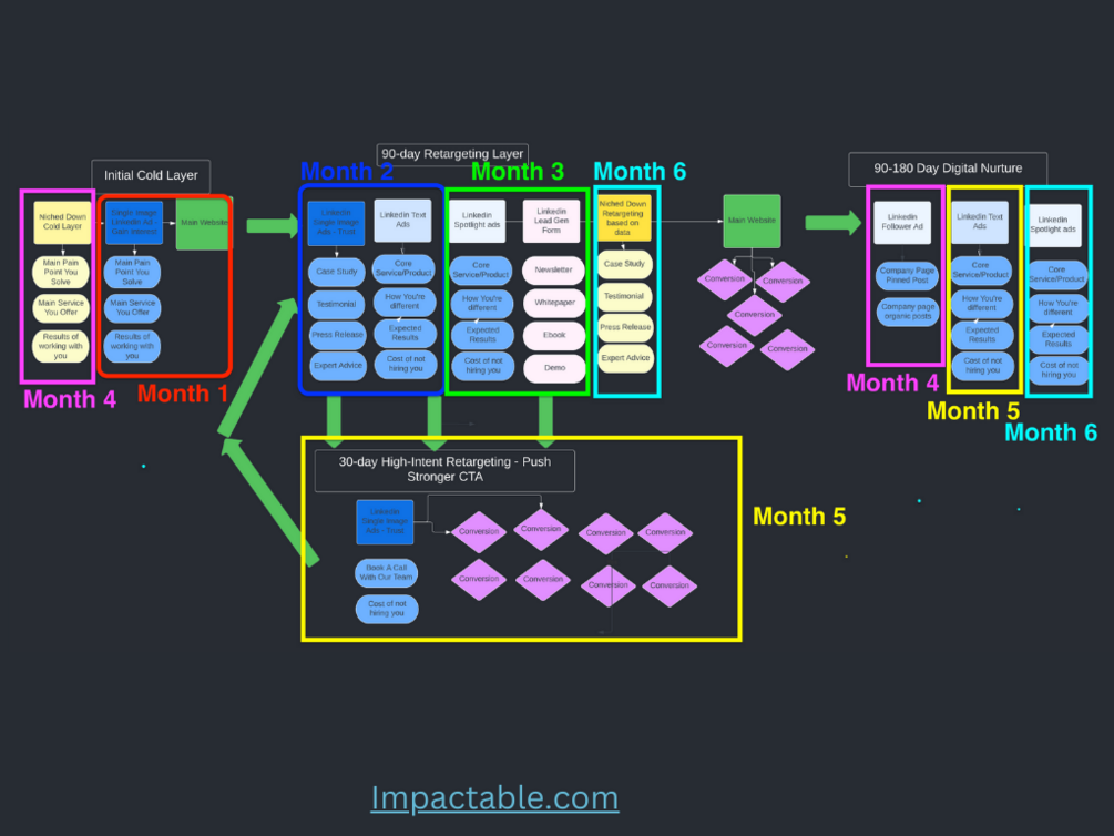 This 6-month Roadmap is a month-by-month guide to build a retargeting masterpiece that will enhance the ROI of ALL of your other ad channels, not just your Linkedin account.
